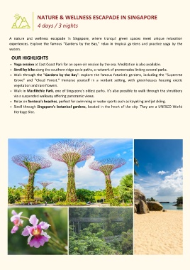 experiences. Explore the famous “Gardens by the Bay,” relax in tropical gardens and practice yoga by the