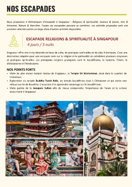 Nous proposons 4 thématiques d’escapade à Singapour : Religions & Spiritualité, Saveurs & Epices, Arts &