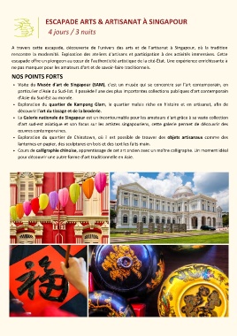 A travers cette escapade, découverte de l'univers des arts et de l'artisanat à Singapour, où la tradition