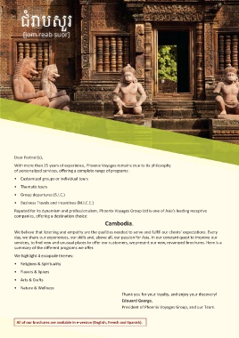 services, to find new and unusual places to offer our customers, we present our new, revamped brochures. Here is a