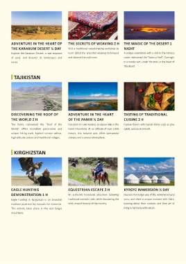 EAGLE HUNTING                        EQUESTRIAN ESCAPE 2 H              KYRGYZ IMMERSION ½ DAY