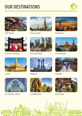 OUR DESTINATIONS VIETNAM THAILAND TAIWAN SOUTH KOREA SINGAPORE MYANMAR LAOS KOREA JAPAN CENTRAL ASIA CAMBODIA BHUTAN