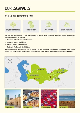 We give you an overview of our 4 escapades in Central Asia, for which we have chosen to develop a
