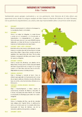 Turkmenistán posee paisajes cautivadores y un rico patrimonio. Este itinerario de 8 días ofrece una