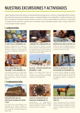EL ARTE DE LA CERÁMICA 2H             SABORES DE UZBEKISTÁN 3H          ESCRITOS DE ASIA CENTRAL 1H