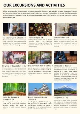 All our excursions offer the opportunity to immerse yourself in the culture and splendors of Japan, discovering its jewels
