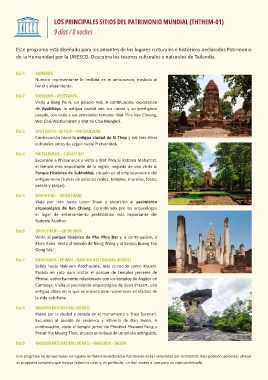 Este programa no incluye todos los lugares de Tailandia declarados Patrimonio de la Humanidad por la UNESCO. Bajo petición, podemos ofrecer