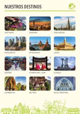 NUESTROS DESTINOS VIETNAM TAIWÁN TAILANDIA SINGAPUR MYANMAR LAOS JAPÓN COREA DEL SUR COREA CAMBOYA BUTÁN ASIA CENTRAL