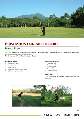 This 9-hole golf course is located on Mount Popa and culminates at nearly 1700m altitude. Nature is omnipresent and wooded