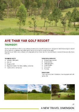 Aye Thar Yar Golf Resort offers a unique playing experience in a beautiful environment. Designed to take full advantage of natural