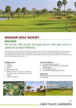 The Angkor Golf Resort opened in December 2007. It is located on the road to the airport, just 15 min from the city centre of Siem