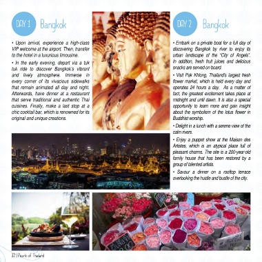 VIP welcome at the airport. Then, transfer                    discovering Bangkok by river to enjoy its
