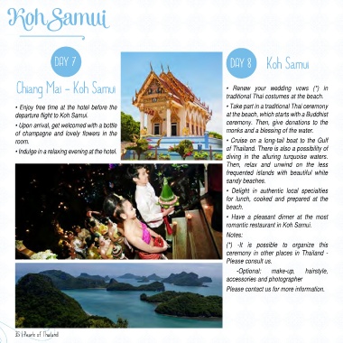 Chiang Mai - Koh Samui                                        • Renew your wedding vows (*) in