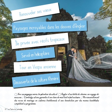 noces au Cambodge est une garantie d 'une lune de miel tout à fait exclusive. Un renouvellement
