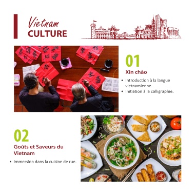 Vietnam • /ŶƚƌŽĚƵĐƟŽŶ ă ůĂ ůĂŶŐƵĞ ǀŝĞƚŶĂŵŝĞŶŶĞ͘ • /ŶŝƟĂƟŽŶ ă ůĂ ĐĂůůŝŐƌĂƉŚŝĞ͘ • /ŵŵĞƌƐŝŽŶ ĚĂŶƐ ůĂ ĐƵŝƐŝŶĞ ĚĞ ƌƵĞ͘
